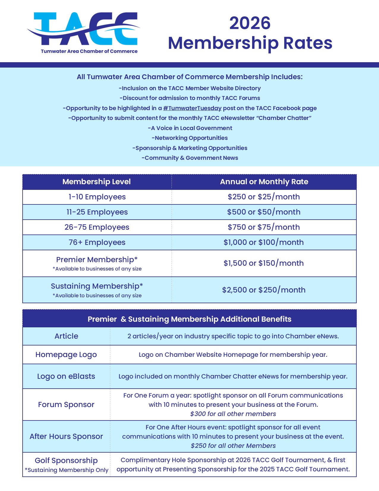 *Golf Tournament sponsorship sign up is separate from membership, for all levels except Sustaining. Sponsorship sign ups will be available in early 2026c.